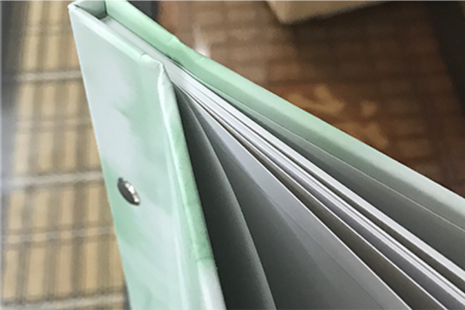 裝訂缺點(diǎn):當(dāng)內(nèi)頁克重大,容易造成活頁釘/夾受損。