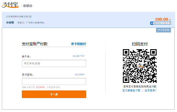 第四步:在支付充值頁(yè)面填寫您的賬戶名與支付密碼,確認(rèn)無(wú)誤后按“下一步”提交信息完成充值。