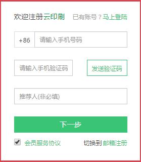 3. 云印刷平臺(tái)需驗(yàn)證手機(jī)號碼進(jìn)行注冊。請?jiān)谧员韱紊咸顚懻_的手機(jī)號碼,并設(shè)置登錄密碼,即可完成會(huì)員注冊。